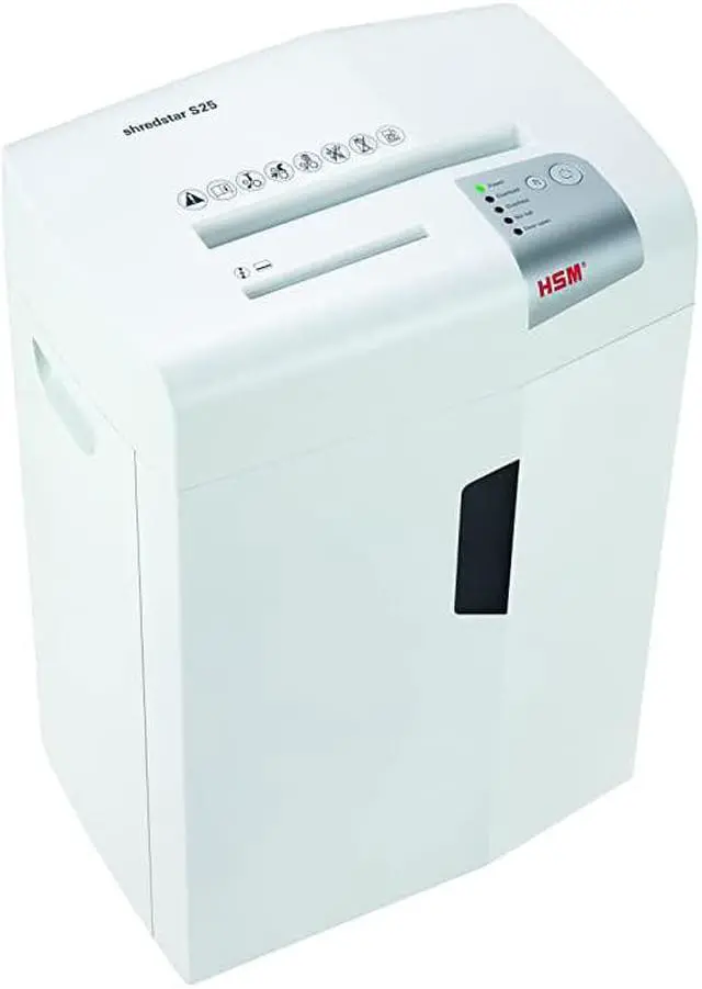 Color: White shred star S25 Strip-Cut shredder; shreds up to 25 sheets; 6. 9 gallon capacity. Ideal for 1-5 users in an office environment. Anti-jam technology. Quiet operation minimizes noise development in the workplace - machine operates at 57 db. Mobile on castor wheels.
