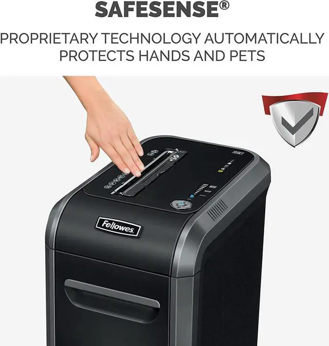 SafeSenseProtection: Our proprietary technology automatically disables the shredder when hands or paws touch the paper opening, helping to protect more than just your identity