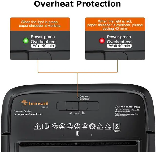 - The machine has an overheat protection device. After the overheat protection has been triggered during the previous use, please cool down for more than 40 minutes before shredding the next time.