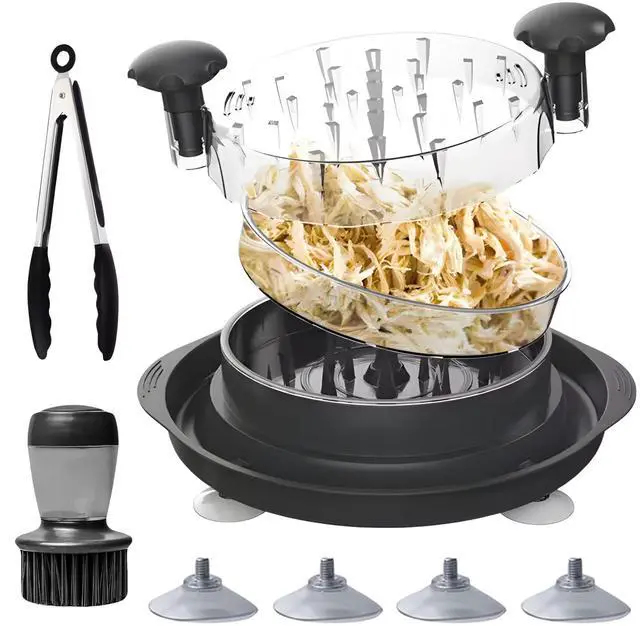 ENHANCED STABILITY WITH SUPERIOR GRIP Equipped with high-strength suction cups and non-slip rubber pads, this chicken grinder remains securely in place during use, delivering a steady, mess-free shredder meat experience every time