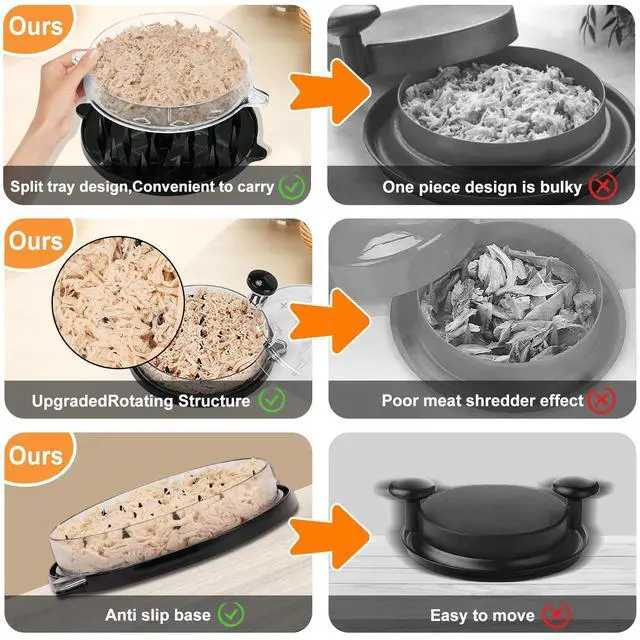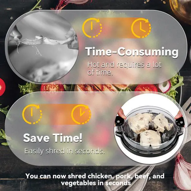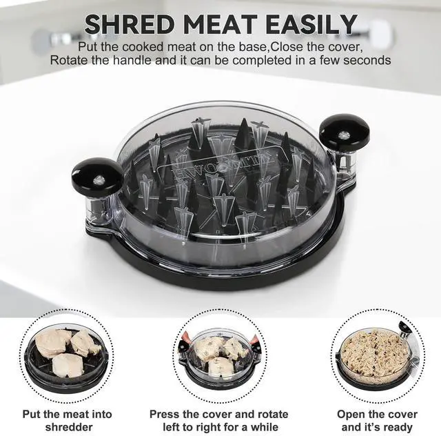 The rotating chicken shredder effortlessly tear through cooked meat, saving you time and effort.