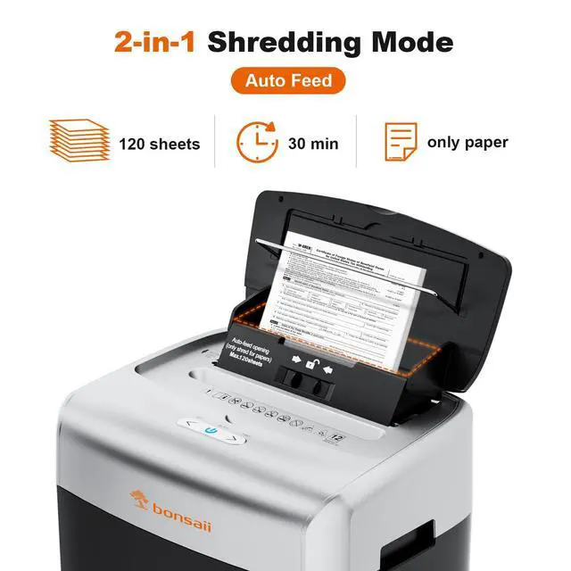 Bonsaii 120-Sheet Micro Cut Auto Feed Paper Shredder - Great for Office Use