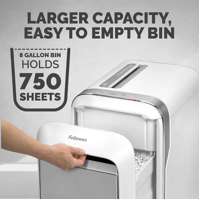 • Large Wastebin: Convenient pull-out wastebin holds 750 shredded sheets of paper.