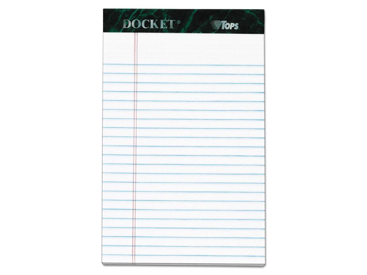 Docket Ruled Perforated Pads, 5 X 8, Narrow, White, 50 Sheets, 6/pack