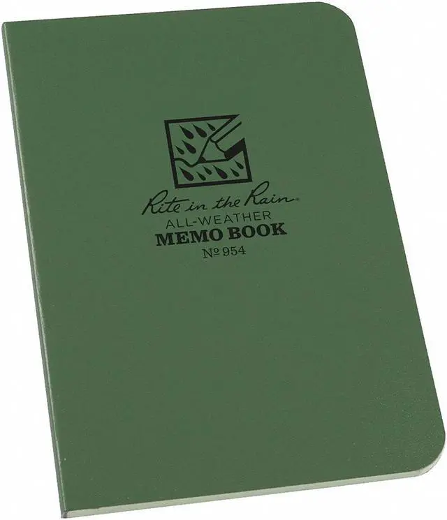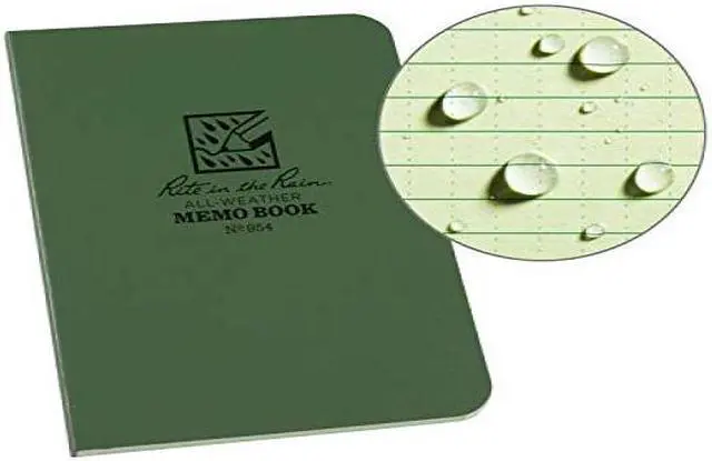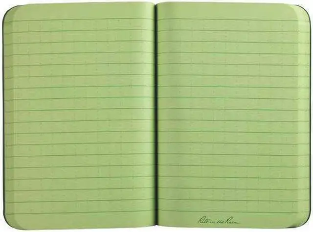 All Weather Notebook, Cover Color Green, Cover Material Field Flex, Binding Nonwirebound, Sheet Size 3-1/2 in x 5 in, Rule Universal, Paper Color White, Paper Weight 20 lb, National Stock No. NSN - 7530-01-536-2655
