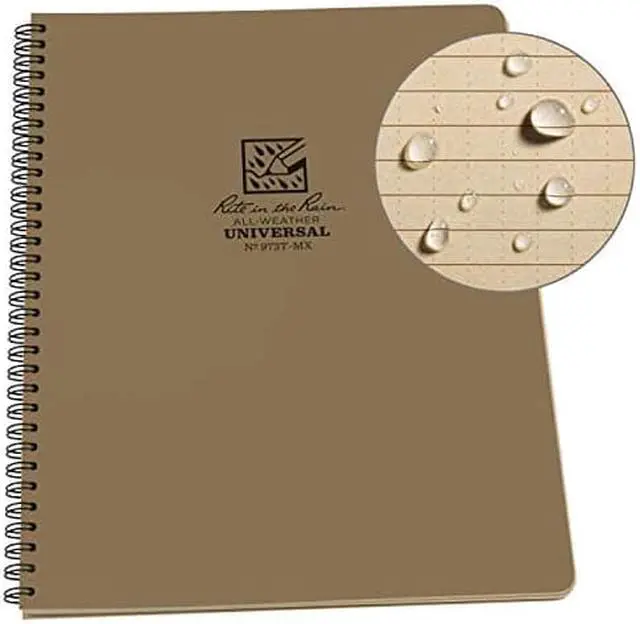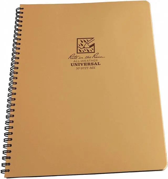 All Weather Notebook, Cover Color Tan, Cover Material Polydura, Binding Wirebound, Backing Polydura, Sheet Size 8-1/2 in x 11 in, Rule Universal, Paper Color Tan, Paper Weight 32 lb. This item has been restricted from sale in the following state (s): []