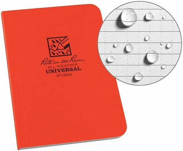Notebook, Cover Color Orange, Cover Material Field Flex, Binding Nonwirebound, Binding Location Left, Backing Field Flex, Total Number of Sheets 50, Sheet Size 3-1/8 in x 5 in, Rule Universal, Margin No, Paper Color Gray, Paper Weight 20 lb, Pages Numbered No, Number of Carbon Sheets 0, Recycled Content 0 Percent