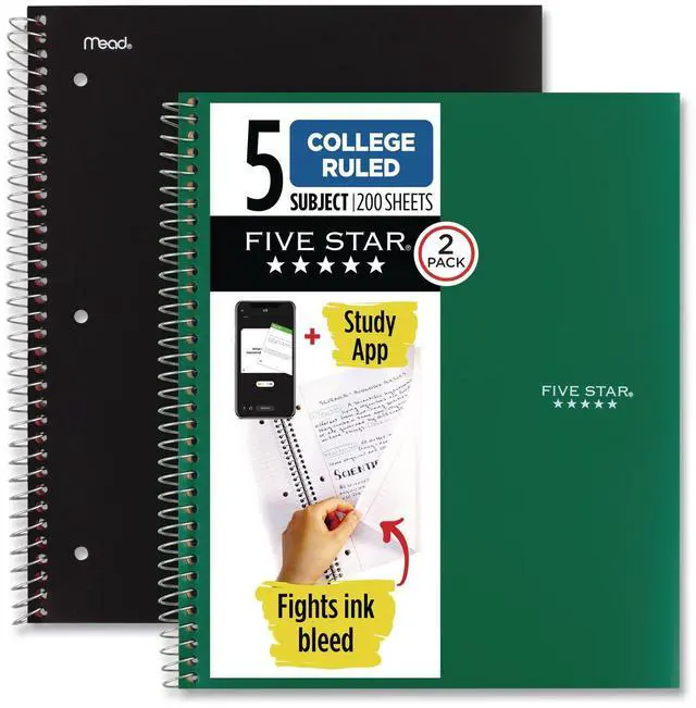 Mead Wirebound Notebook 5-Subject College Rule Assorted Colors 2Ct 820190