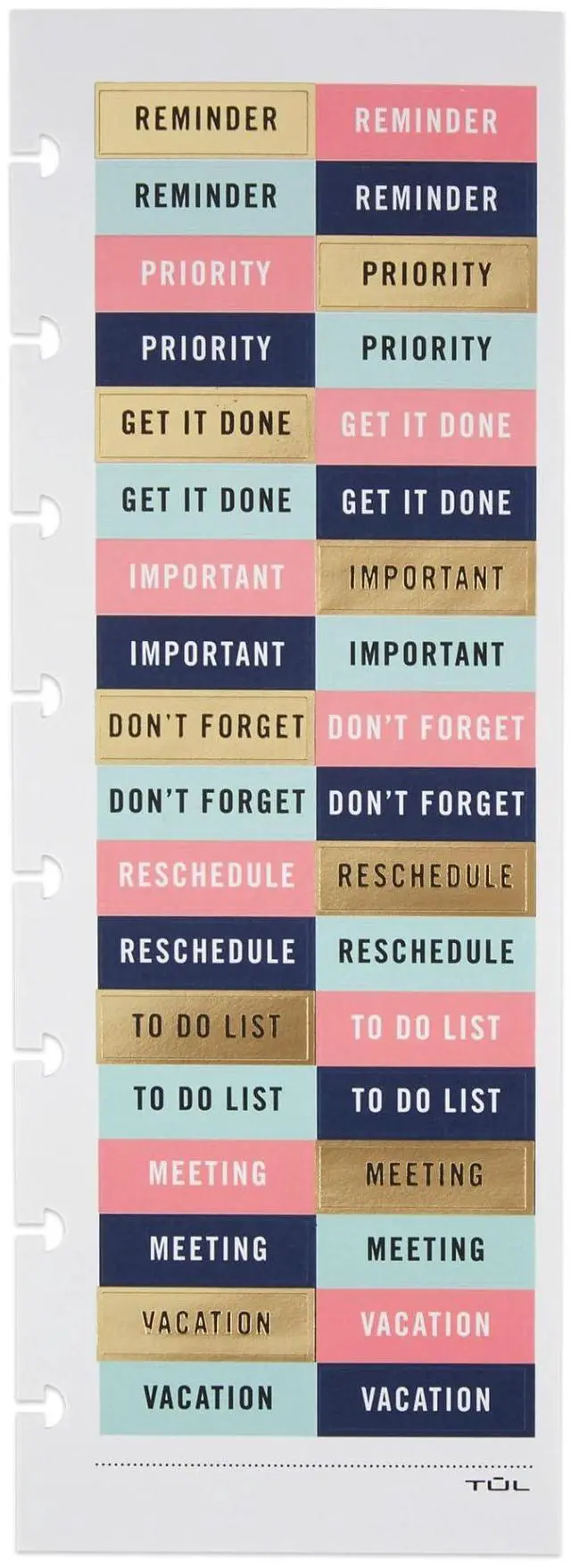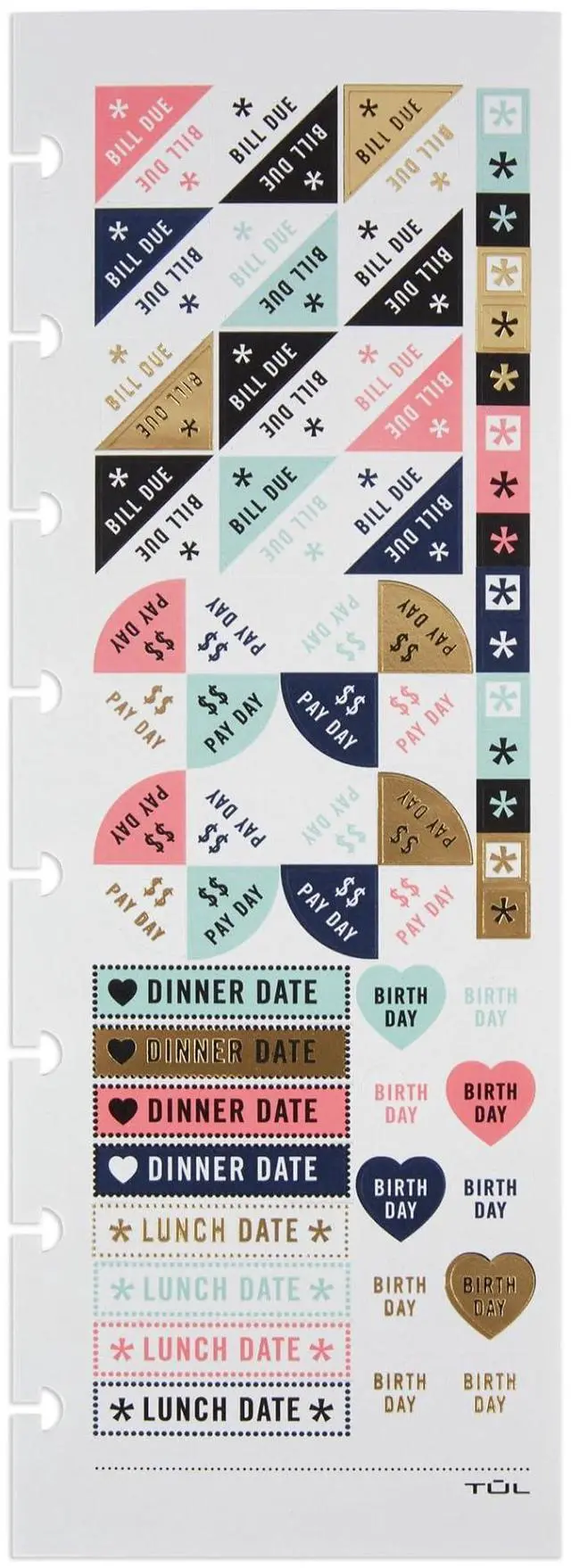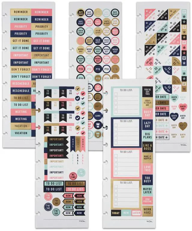 Enhance the look of your planner with these fun and informative stickers. The stickers are great for TUL insert sheets or nearly any calendar, planner or journal. Add these stickers to your TUL insert sheets or any calendar, planner or journal. Sticker sheet measures 3" x 8-1/2". Comes with 10 assorted stickers. Great for use in Letter or Junior size TUL Discbound products.