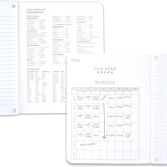 Five Star Wide-Ruled Composition Books are ideal for labs, journal writing, note-taking, and more! The vibrant cover colors help you stay organized by keeping school subjects separate. Each book has 80 double-sided, wide-ruled sheets made of high-quality paper. Wide ruling is ideal for younger students who need more space between lines. Sheets are securely sewn in to the durable one-piece plastic cover. The durable cover helps to protect notes all year long, and lies flat when open for easy note-taking. Also, the smooth, wireless-sewn binding won't snag on your clothes or backpack. The compact size is ideal for both in-class and take home assignments, and can comfortably fit in almost any bag.