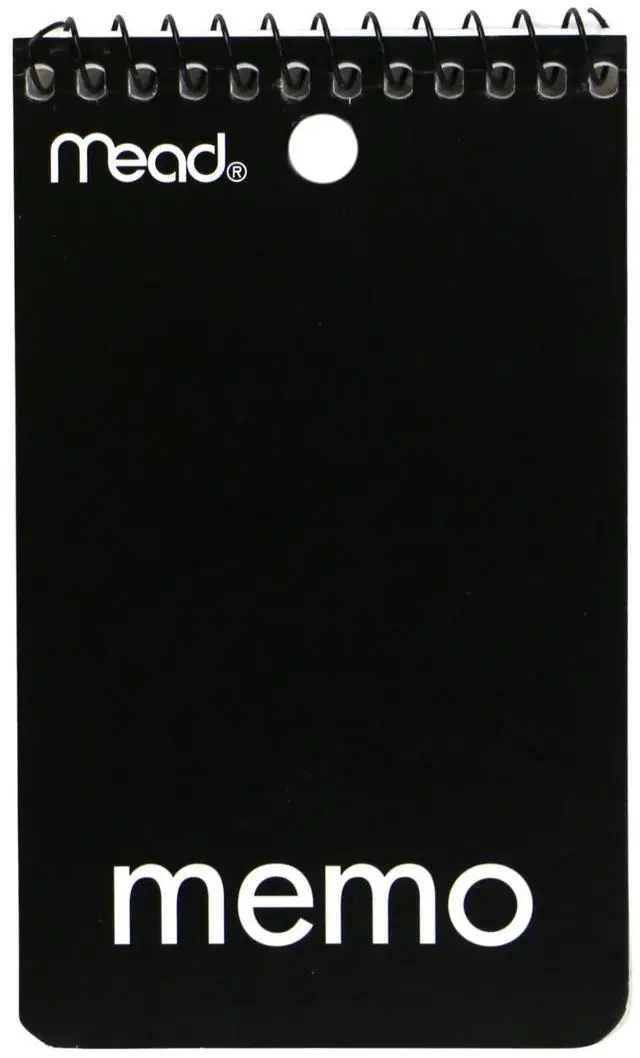 Jot down notes or assignments with this handy Mead Top Bound Spiral Mini Memo Book. The college ruled paper keep notes aligned and easy to read. These thoughtfully-designed notebooks are assembled right here in the U.S. Each cover is coated for durability and features a bright color to easily color-code by subject or class. Each notepad has a single hole punch to easily attach in any binder or on a carabiner.