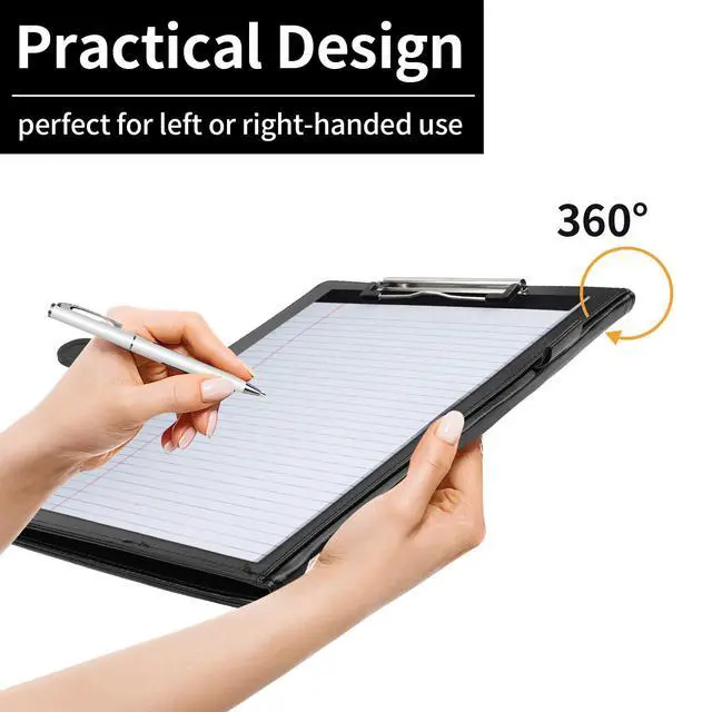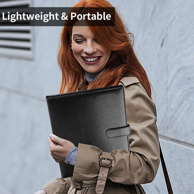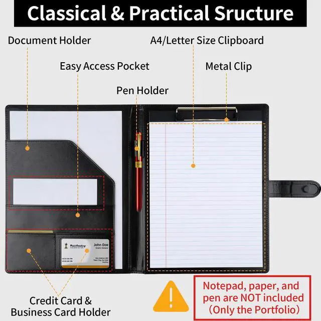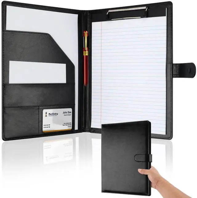 Portfolio Binder, Faux Leather Padfolio Clipboard with Storage, A4 Letter Size Black Portfolio Folder for Resume Notepad, Legal Pad Holder Writing Pad for Business, Office, Conference, School