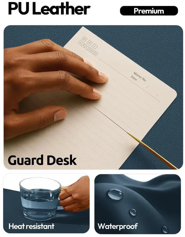 Leather Desk Protector, Office Mat, Large Mouse Mat, Non-Slip PU Leather Blotter, Laptop Pad, Waterproof Writing Pad for Office and Home (Dark Blue, 35.4" x 17")