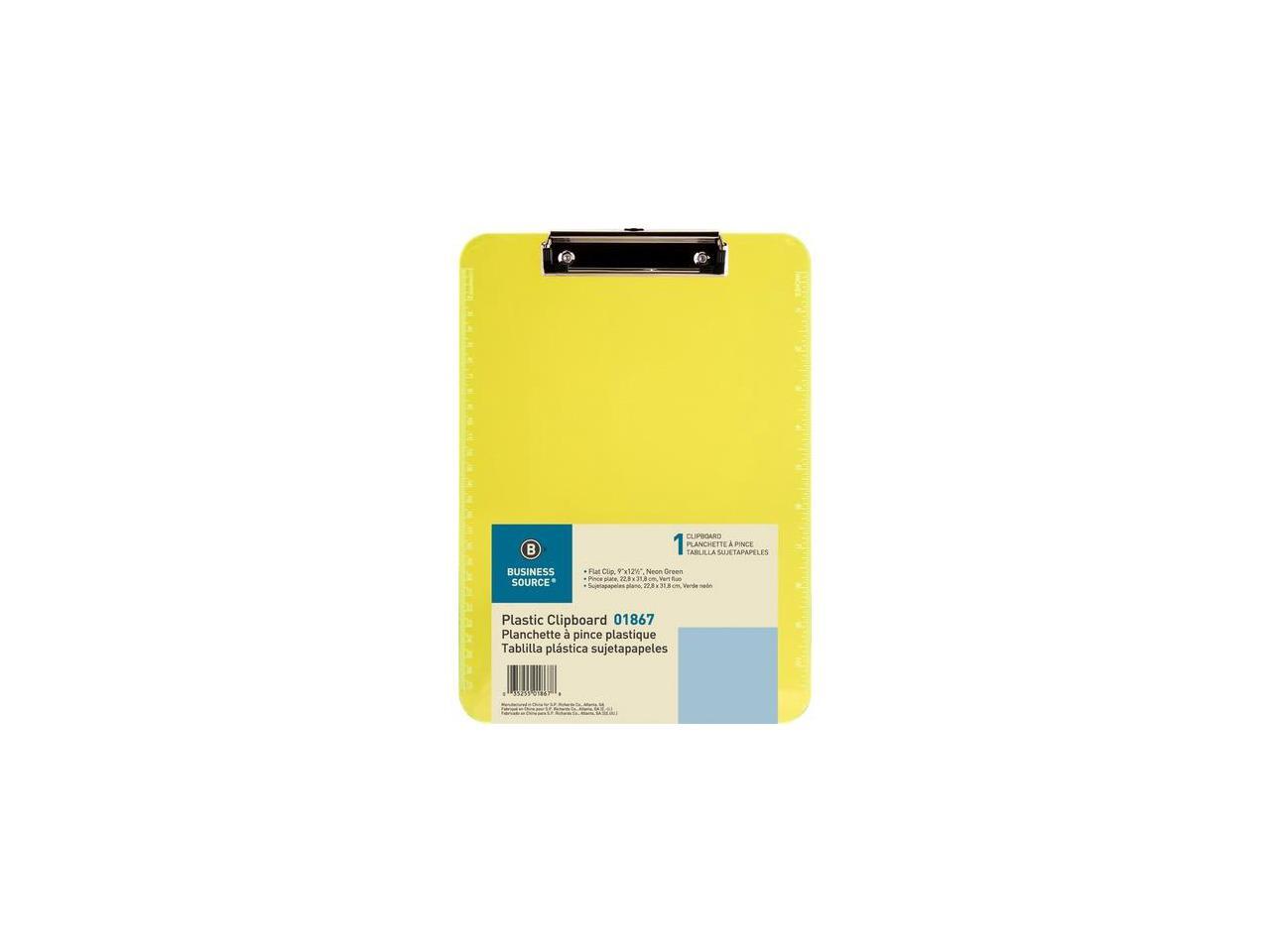 Business Source Flat Clip Plastic Clipboard - 9" x 12" - Low-profile - Plastic - Neon Green - 6 / Bundle BSN01867BD
