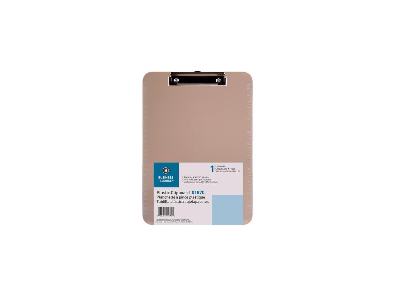 Business Source Flat Clip Plastic Clipboard - 9" x 12" - Low-profile - Plastic - Smoke - 6 / Bundle BSN01870BD