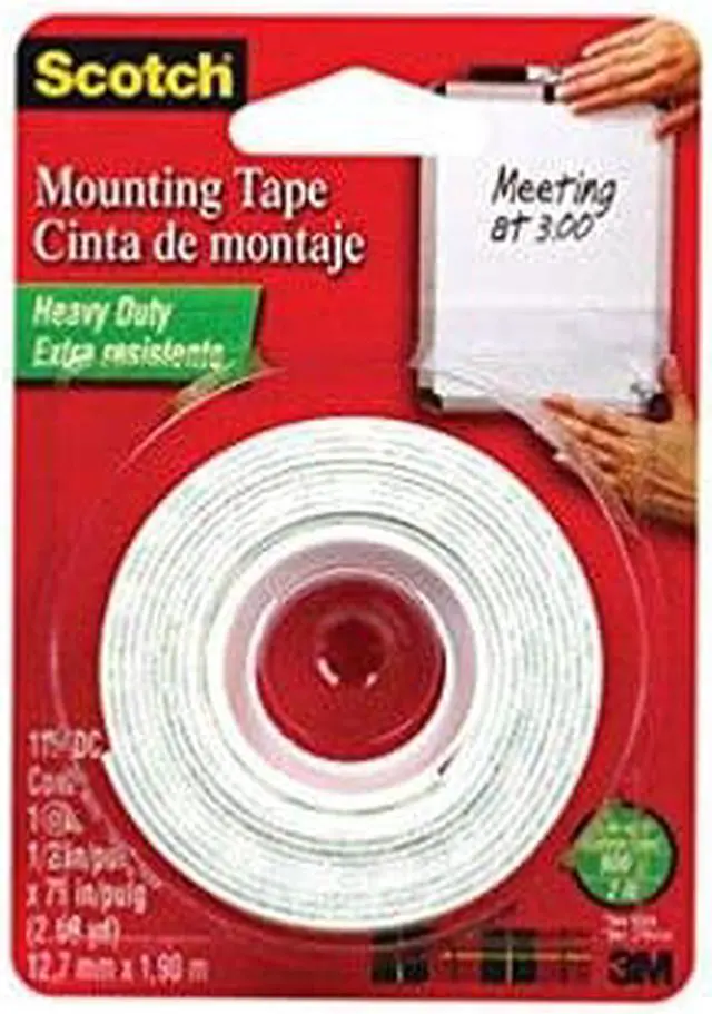 Manufacturer No. - 110P UPC - 051141334455Roll Width: 1/2 in. Roll Length: 75 in. Product Type: Mounting Tape Color Family: White Thickness: 1/16 mm Width: 1/2 in. Number in Package: 1 pc. Reinforced: No Dispenser Included: No Color: White Product Name: Mounting