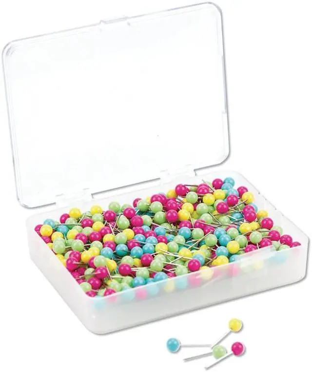 - Map push pins in bright assorted colors with a plastic head and steel needle point.