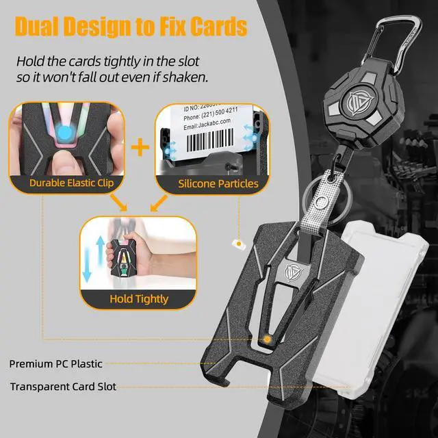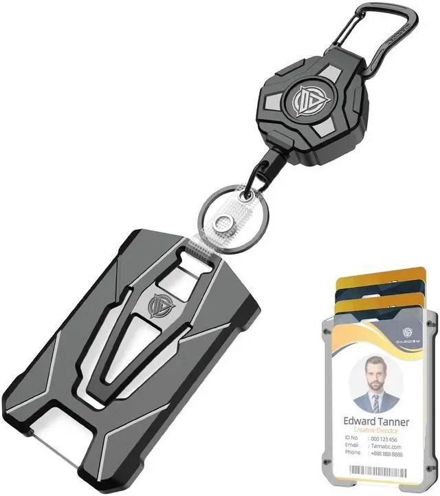 Merchant VideoOaridey retractable badge holder, crafted from a heavy-duty retractable keychain and a PC badge holder, is an exceptionally durable and premium EDC (Everyday Carry) accessory that combines ruggedness with a sleek, modern design.