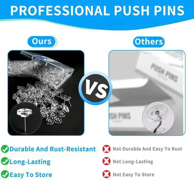 High-Quality Material Combination: Made of sturdy transparent plastic heads and durable steel needles, reliable and sturdy, not easy to bend or break. The transparent heads do not affect the appearance of the fixed items and can remain bright and not rusty in various environments