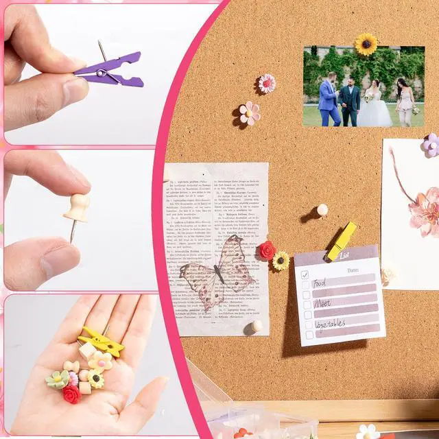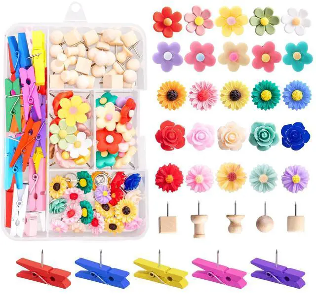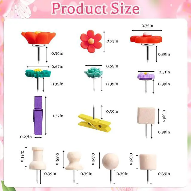 Package IncludesYou will receive a set of 78 pcs push pins in a plastic box, including 50 flower push pins, 26 wooden thumb tacks, 12 push pin clips for bulletin board, rich sets are enough to meet your office needs.