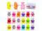Material: resin, metal Colors: blue, purple, pink, green, orange, yellow, red.
