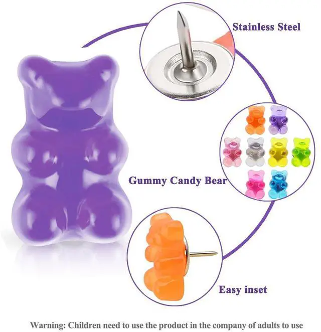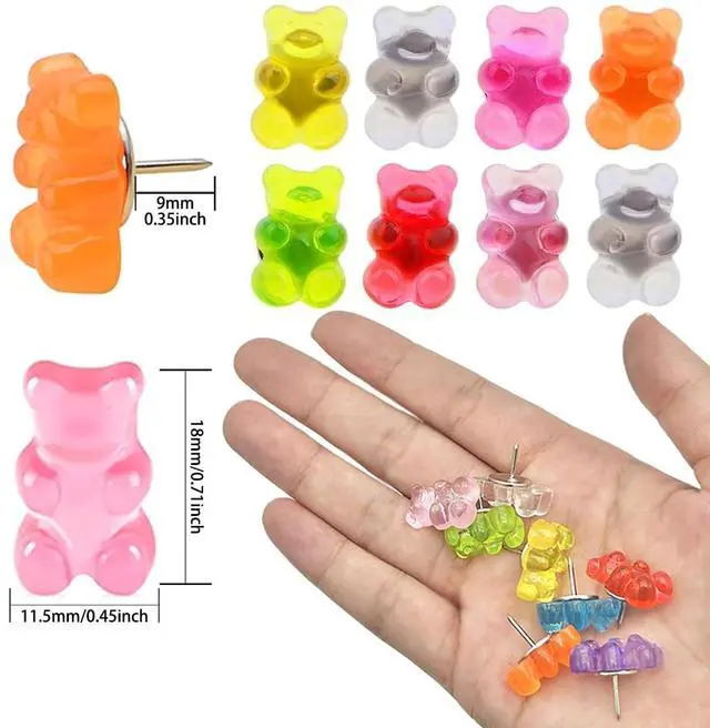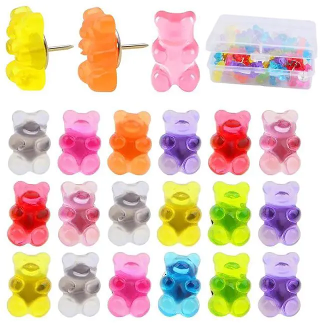 25 Pcs Decorative Push Pins Thumb Tack Bears Push Pins for Cork Board Bears Push Pins Translucent Thumb Tacks