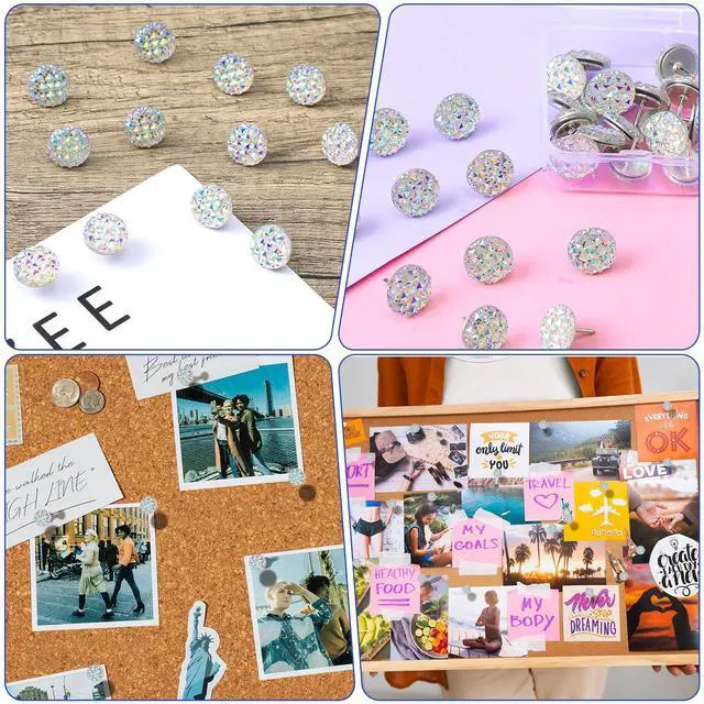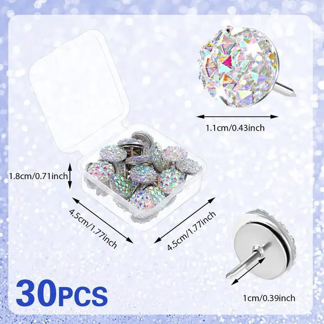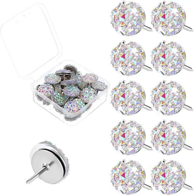 Package Component: A storage box with 30 pieces AB colored rhinestone thumb tacks.