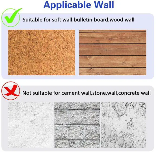 The thumbtacks can be installed gently by hand and are easy to use. Decorative push pins are suitable for use on wood walls, cork bulletin boards and soft surfaces, not for concrete or cement walls.