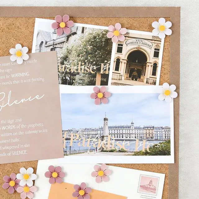 Versatile Thumb Tacks Flower Push Pins with sharp and durable metal pins, can firmly fix bulletin boards, cork boards and thick cardboards. these floral thumb tacks are perfect for hanging photos, memos, posters, or marking maps