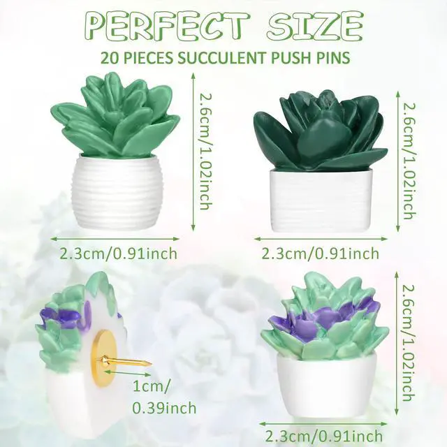 Package: 20 pcs succulent plants pushpins come with a box, convenient for storage and use. They have three assorted succulent plant styles.