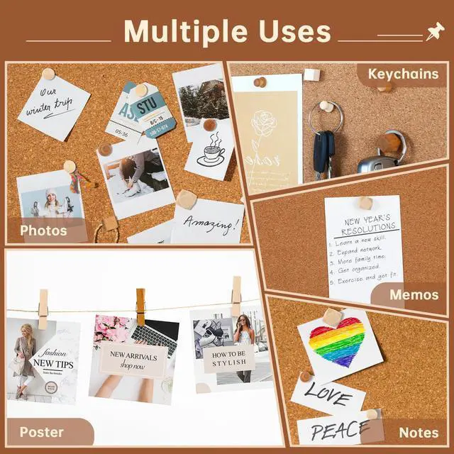 • Durable MaterialThese pushpins are made of natural wood heads and steel needle points, The pins are lightweight,sturdy, work well and aesthetically pleasing, you can easily nail it to the board, the advanced coffee color of wood makes the wooden push pins more delicate.It is complementary to any decor and that it comes with a clothespin style.