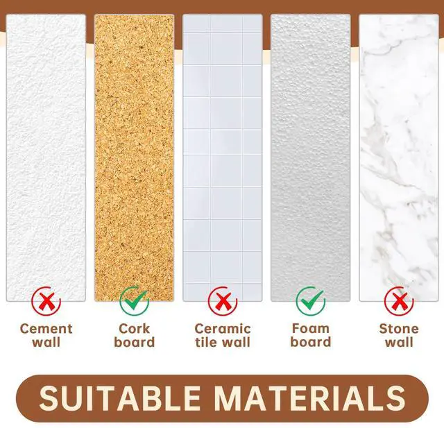 • Wide ApplicationThese decorative tacks to fix photos, posters, cards,memos and calendars on cork boards, bulletin boards,foam boards, and walls,as well as for handicraft or to mark locations, points of interest, and travel routes on maps. Not suitable for solid walls.