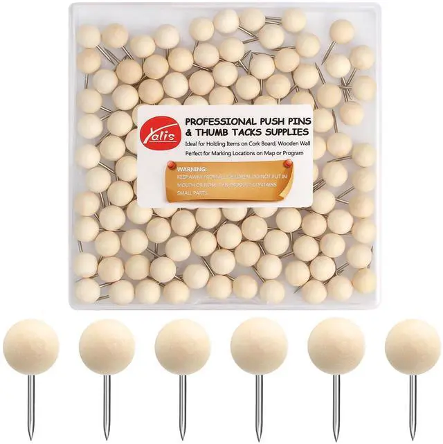 These wooden push pins crafted by YALIS provide excellent assistance in pinning your important papers and messages while keeping you organized. Durably constructed, these pins allow you to easily pin your supplies from the smooth wood head of the metal pin without harming your hands by its sharp, steel point. The sharp end of the pin can be easily inserted into tough surfaces such as cork boards, bulletin boards, notice boards, maps and even to hang up personal decorations like posters! Ideal for work and home offices, classrooms, and dorm rooms, these push pins are essential for your office supply expectations. Stylish thumbtacks come in appealing, box package perfect for office organization.