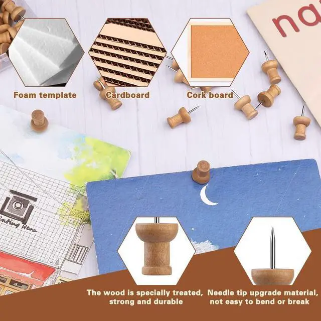 The needle of wooden push pin is sharp and sturdy, not easy to break or bend, you can easily nail it to the board. Ideal for many occasion.