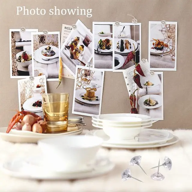 - Diamond tacks are made of plastic and stainless steel, the clear plastic head, not easy to break or bend.