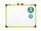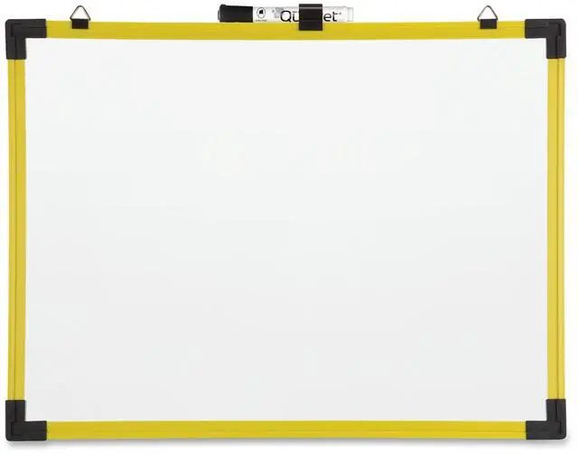 Industrial, magnetic whiteboard features a yellow frame so that it is highly visible. It is an ideal platform for important announcements. Smooth writing surface is magnetic to double as a bulletin board to post announcements. Durable construction delivers dependable performance in manufacturing locales and comparable worksites. Mounting hooks are included for quick, easy hanging.