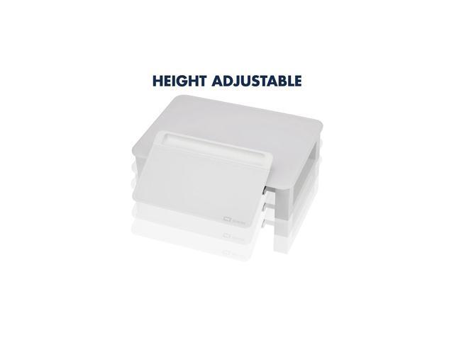 - ADJUSTABLE HEIGHT Find the most comfortable height for your desk. This riser has 3 adjustable height levels, 2 1/4", 3 3/4", and 5 1/4", so you can easily set your laptop or monitor at eye-level.