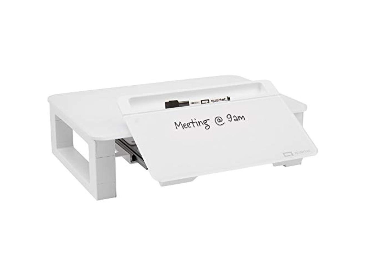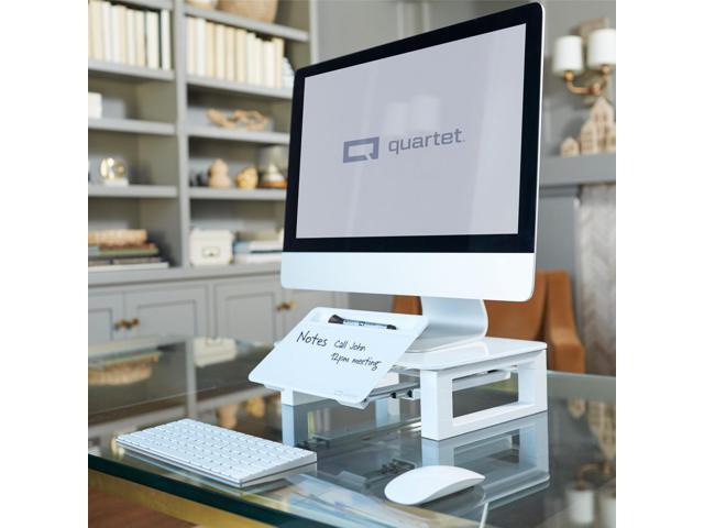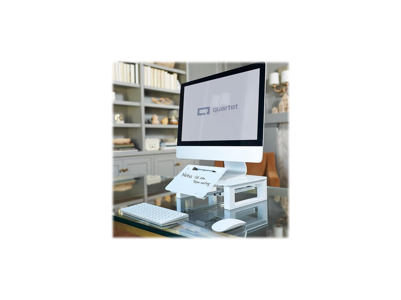 quartet desktop glass monitor riser for computer with dry-erase board, adjustable height (q090gmrw01)