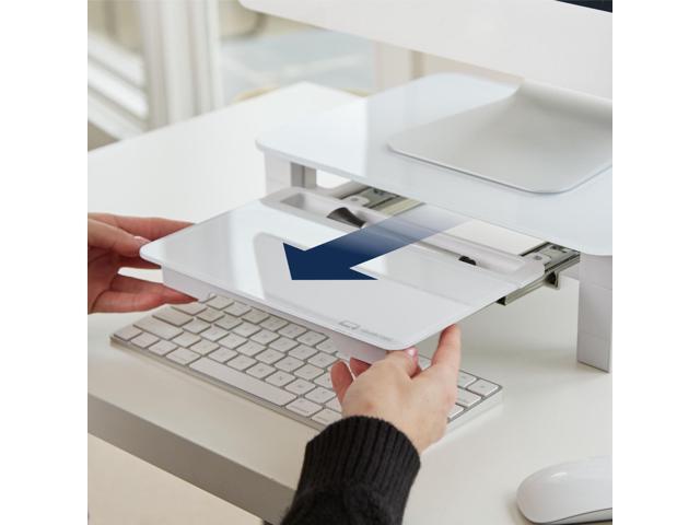 - DURABLE DESIGN Both sturdy and reliable, this riser has a 6 mm thick tempered glass surface and supports up to 100 lbs. Plus, non-skid rubber feet help keep the riser in place on your desk.