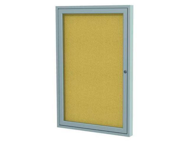 Ghent PA13636K 1 Door Enclosed Natural Cork Bulletin Board with Satin Frame - 36" x 36" - Tan Surface, Satin Aluminum Frame