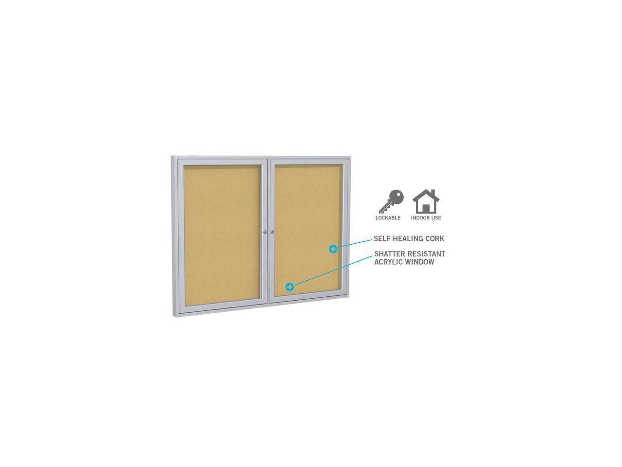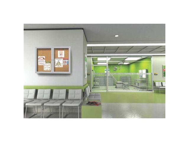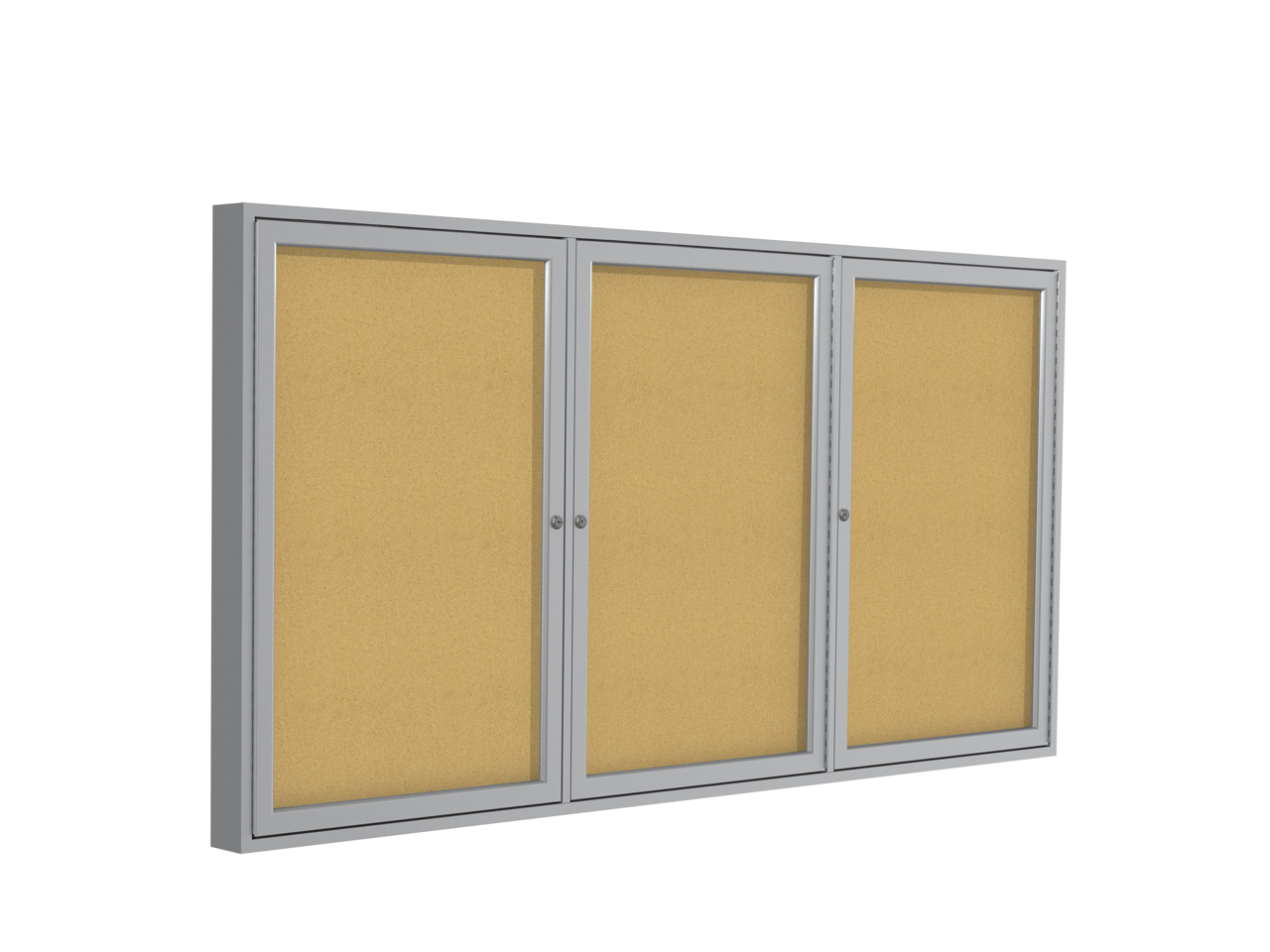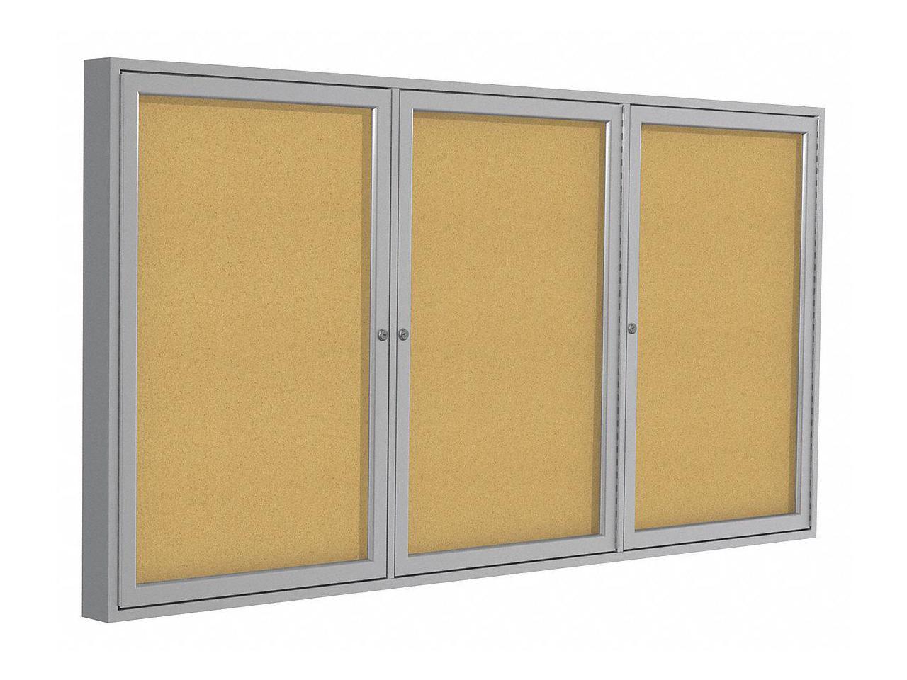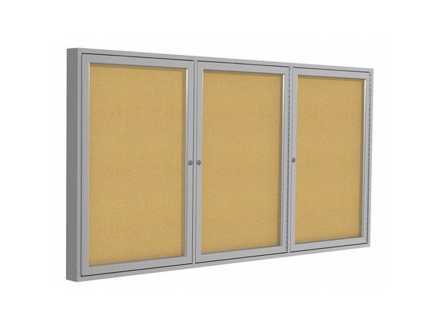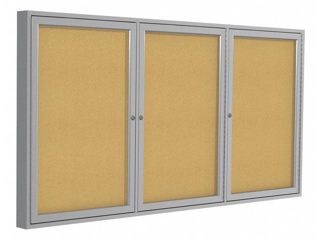 Ghent PA34896K 3 Door Enclosed Natural Cork Bulletin Board with Satin Frame - 96" x 48" - Tan Surface, Satin Aluminum Frame