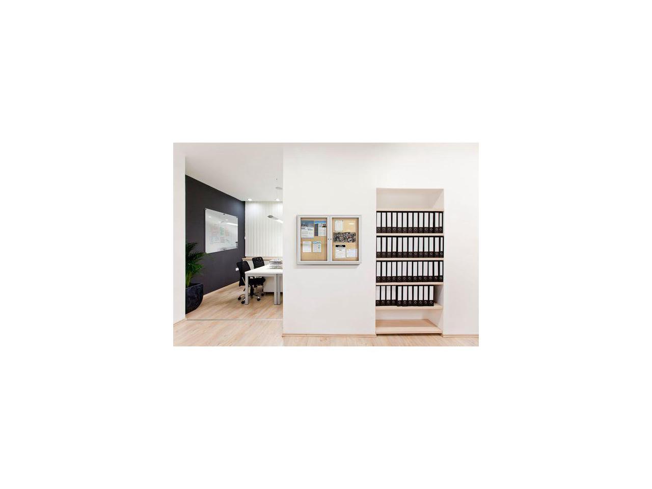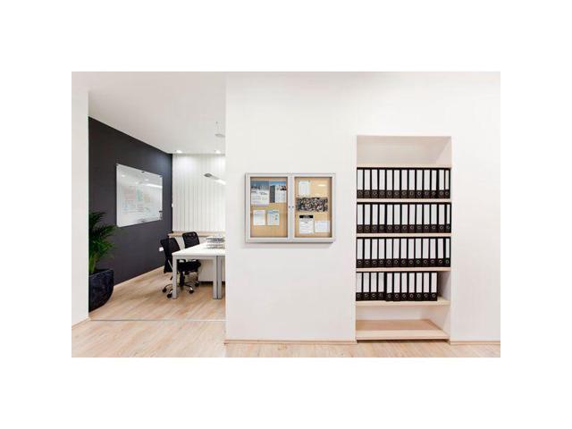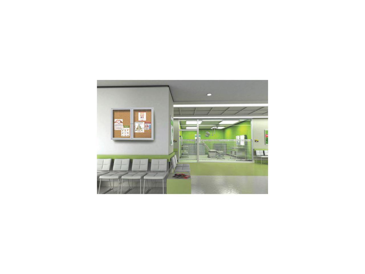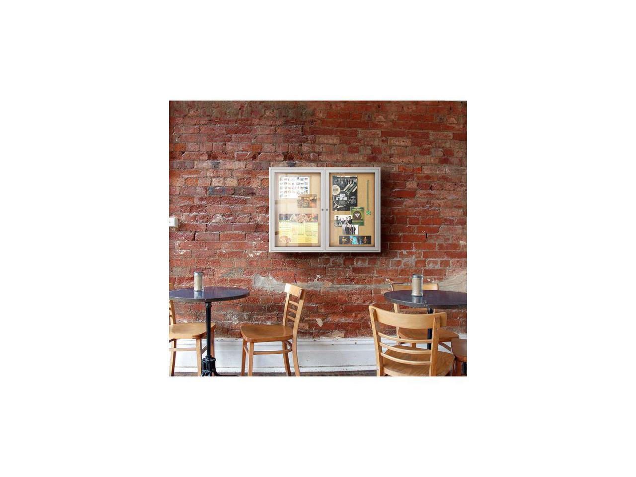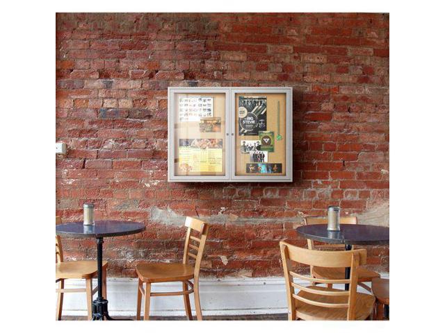 Ghent PA34896K 3 Door Enclosed Natural Cork Bulletin Board with Satin Frame - 96" x 48" - Tan Surface, Satin Aluminum Frame