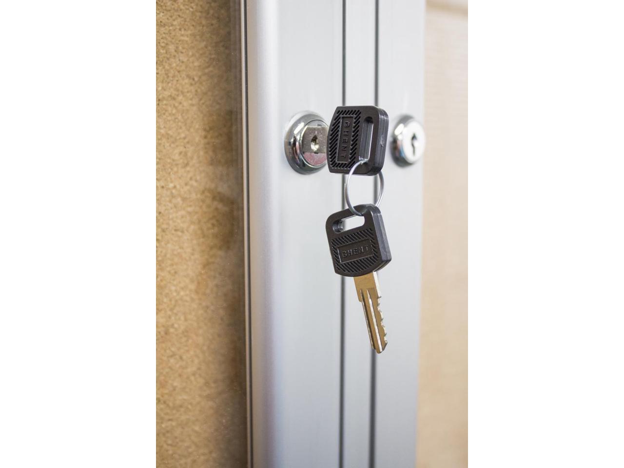- Flush mount locks and shatter-resistant acrylic panels for added security.