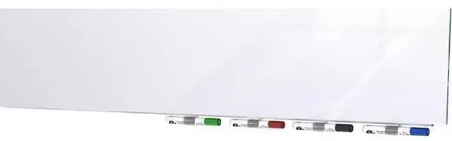 Aria Low Profile Glass Whiteboards achieve the look of weightless, floating glass. No visible hanging hardware or stand-offs allow the beauty of the frameless glass to complement any décor creating an unobstructed writing surface. Our team of engineers developed a heavy-duty hanging system that promotes security and confidence in the installation of your low profile glass whiteboard. With Aria glassboards, you can be confident your board will never bow, strain, or move from the wall. Aria can be hung on a variety of surfaces including, but not limited to, drywall, concrete and brick surfaces. Because of the unique hanging system, Aria glass whiteboards can be ordered specifically to hang in portrait or landscape positions depending on space and preference. Aria can be used as a single board for personal offices and conferences rooms, or create a glass whiteboard wall by lining up multiple glassboards in a row. Aria is constructed using premium ¼ tempered glass and when installed, floats just ½ from the wall. The lower steel support bar doubles as integrated magnetic marker storage, keeping the writing surface free from clutter. Available in 13 standard colors as well as non-magnetic and magnetic glass. Ships to you in Ghents worry-free packaging, designed specifically for shipping whiteboards. Comes with 4 markers and an eraser. Ghents full line of glass whiteboards, including Aria, carries a 50-year warranty and is made in the USA.