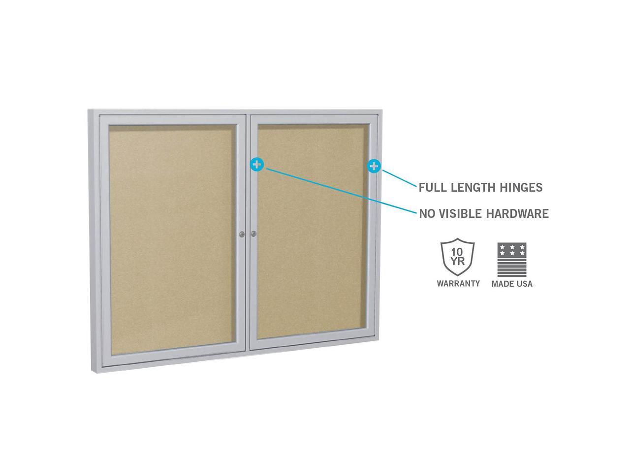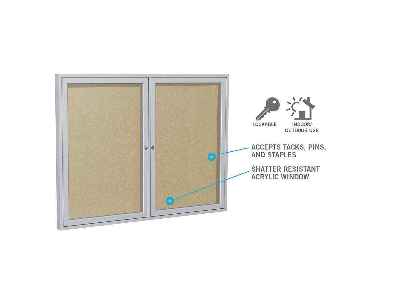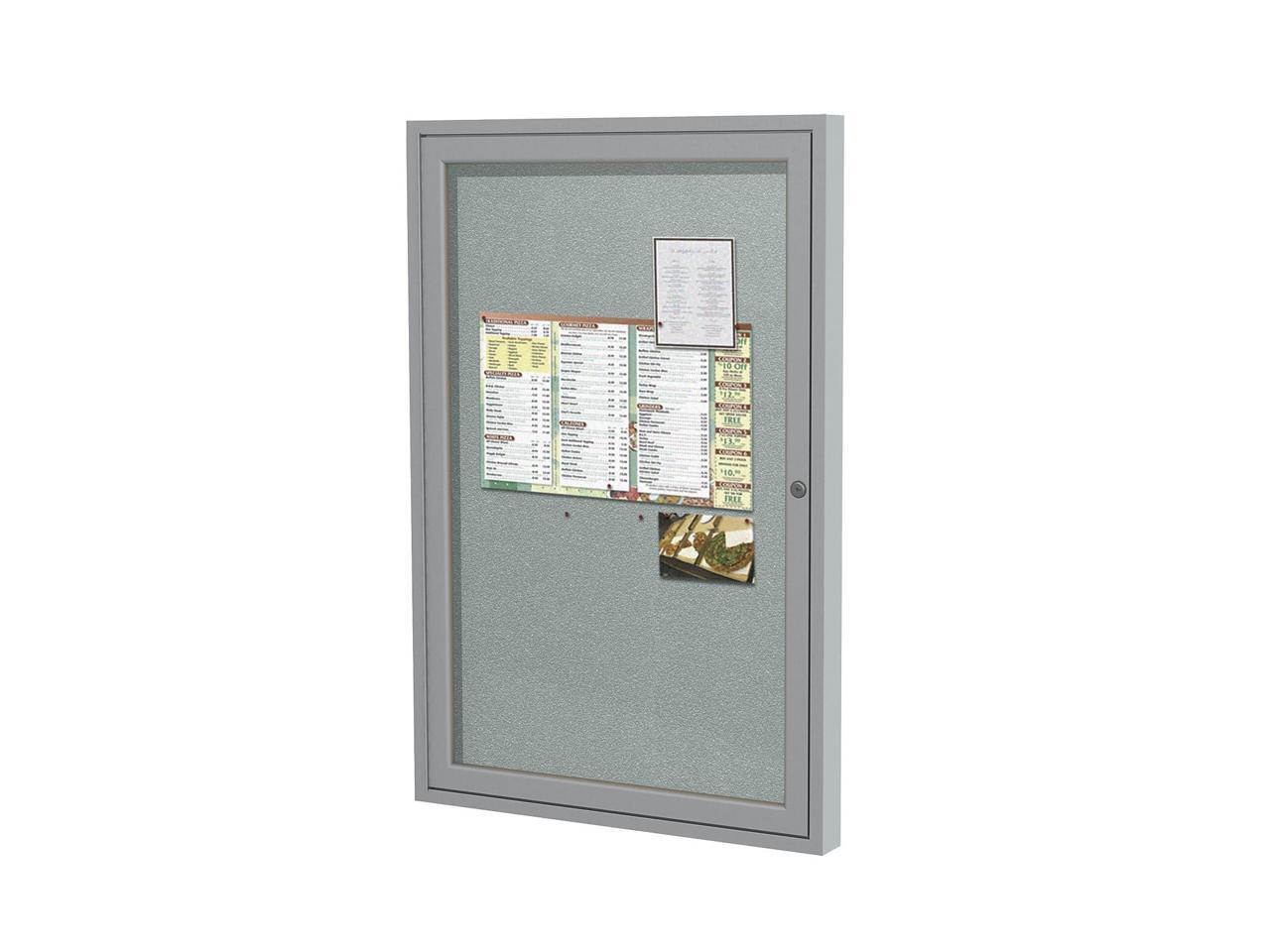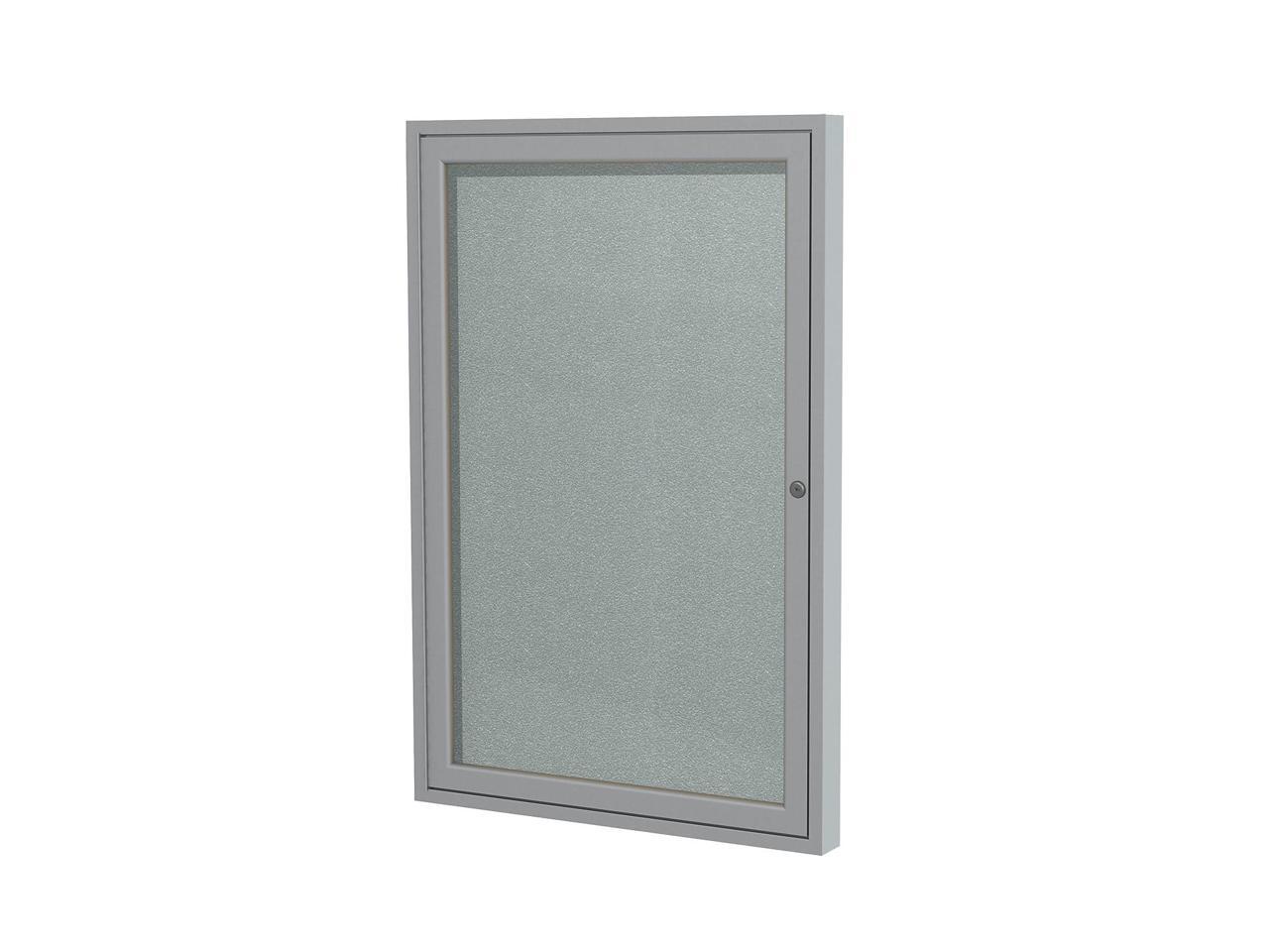 Ghent PA13624VX-193 1 Door Enclosed Vinyl Bulletin Board with Satin Frame - 24" x 36" - Silver Surface, Satin Aluminum Frame