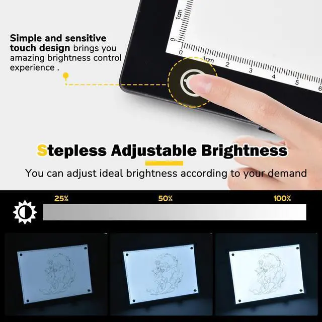- Humanized Design - Foldable stand offers 10-level adjustment to help you set perfect viewing angle & height for optimal comfort, and anti-skid pad to keep LED board steady; Measuring border to quickly scale your work; Magnets to hold tracing paper firmly without damaging your artwork