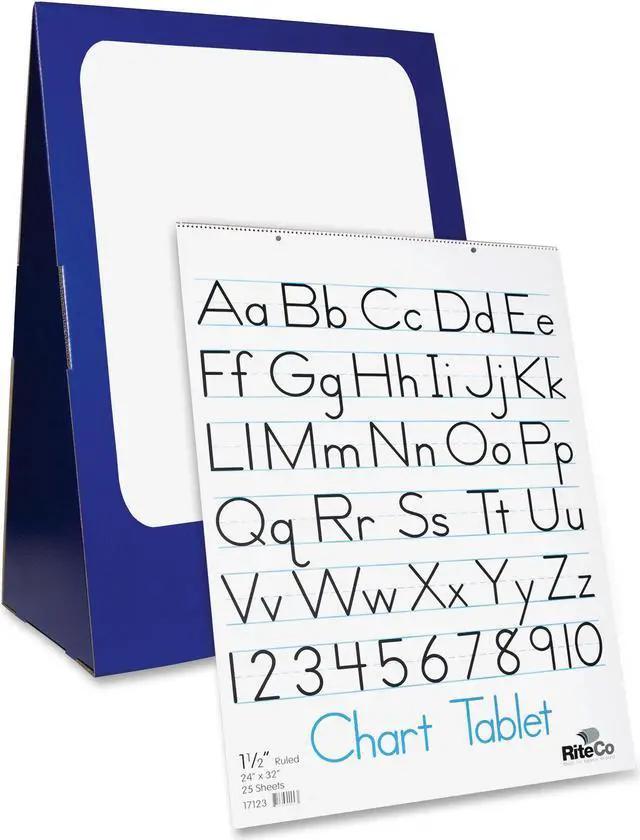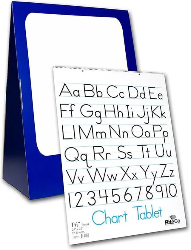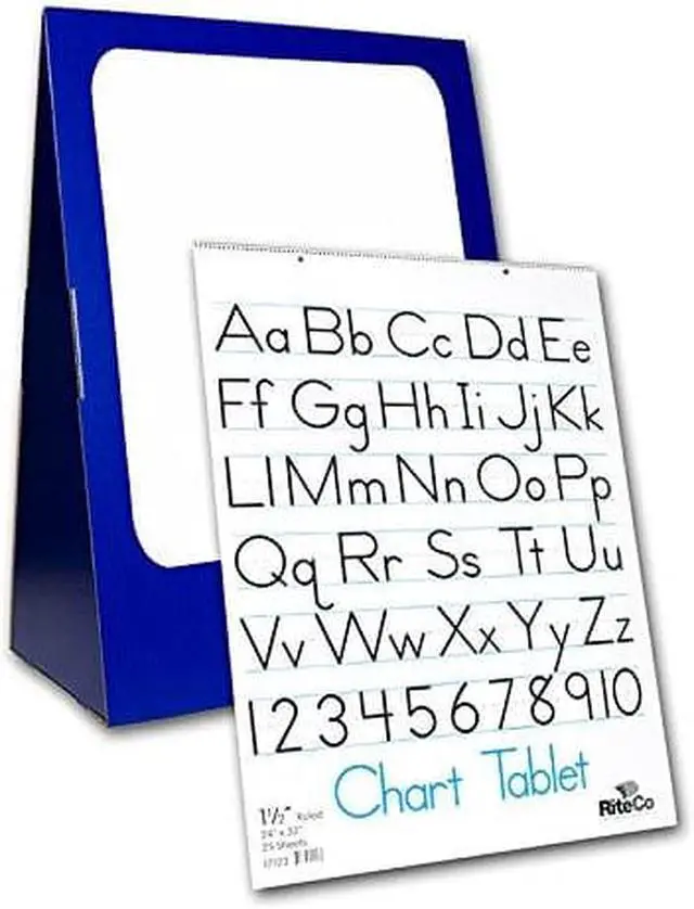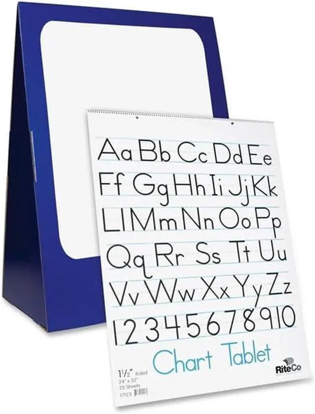 Deluxe Chart Stand keeps spiral-bound charts visible and in good condition with the added benefit of a dry erase board at your fingertips! This lightweight and portable blue corrugated stand holds spiral-bound chart tablets. 24" wide x 33" high x 14 " deep base. Carton contains one stand with 18" x 24" attached dry erase board and one 24" x 32" ruled chart tablet. Assembly instructions included. Made in USA.