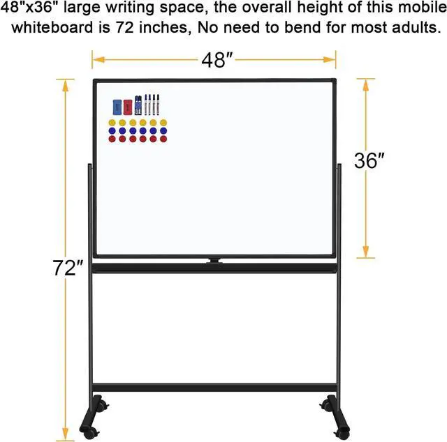 & Durable]: The double-sided magnet dry erase board is made of solid wood, and scratch-resistant surface, also, the sturdy rolling stand is made of rust-protective coating iron. Locked wheels are 2 inches in diameter, enough to support the weight of the entire whiteboard, If we forget wheels are locked when moving, DON'T WORRY, Automatically Unlock Wheels feature, they can be well protected and have a long use time.