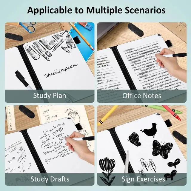 The inside of the white board writing page is supported by foam, the surface has a certain degree of softness, which is more comfortable for writing. The inner corners of the notebook are designed with silicone gaskets, to prevent writing from being erased when closing