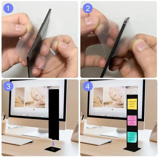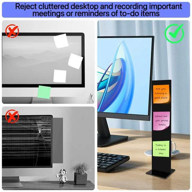 Durable Acrylic Design:Our memo board holder is made of strong, high-quality acrylic that wont break easily and looks sleek. Its built for daily use, adds a modern touch to your space, its smooth surface is easy to clean, keeping your notes looking neat and presentable